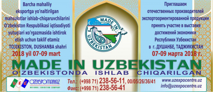 Dushanbeda Made in Uzbekistan ko‘rgazmasi bo‘lib o‘tadi