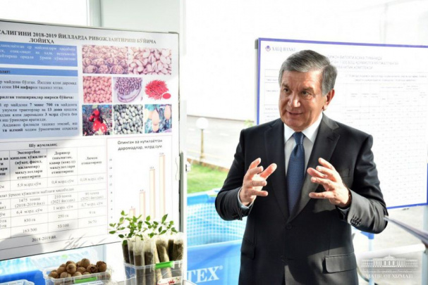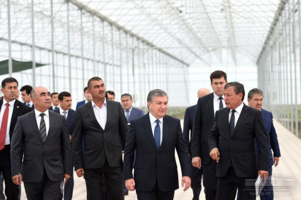 Mirziyoyev Andijonda banan yetishtiriluvchi issiqxonani kirib ko‘rdi