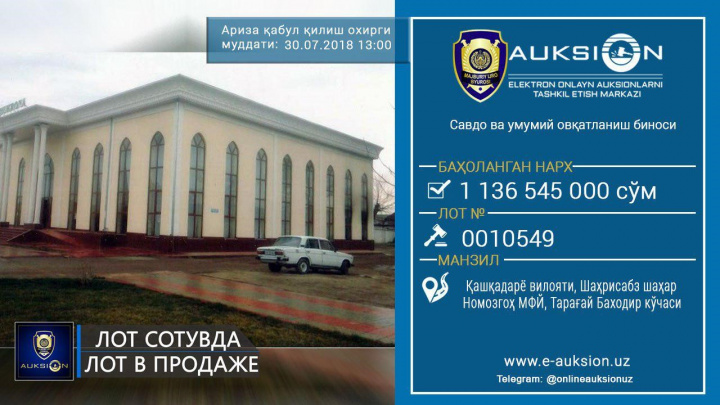 MIB davlat mulki obektlarini ijaraga olish bo‘yicha auksion savdolarini o‘tkazmoqda