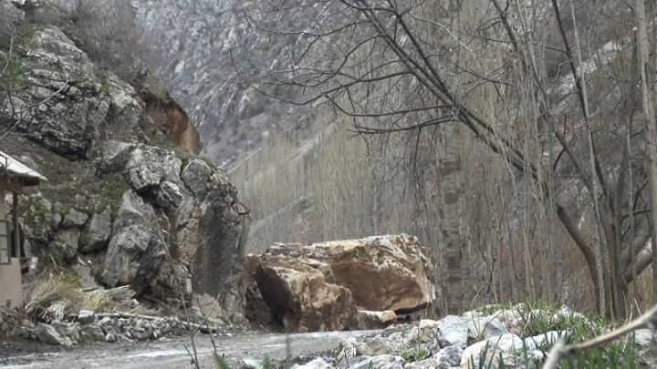 Qashqadaryoda yo‘l ustiga xarsangtosh tushib ketdi