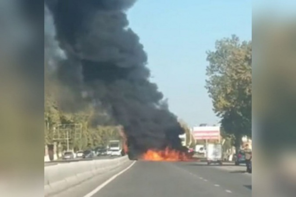Samarqandda yuk mashinasi yonib ketdi