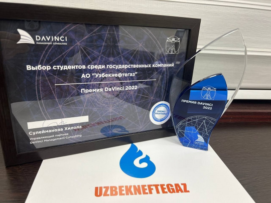 “O‘zbekneftgaz” AJ “DaVinchi mukofoti”ning “Davlat tashkilotlari orasida talabalar tanlovi” nominatsiyasi g‘olibi bo‘ldi
