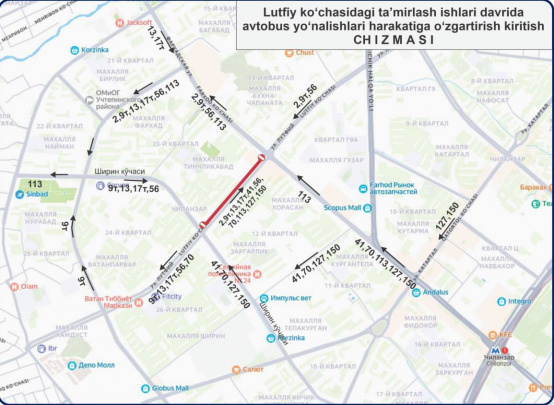 Lutfiy ko‘chasidagi qurilish sabab avtobus yo‘nalishlariga o‘zgartirish kiritildi