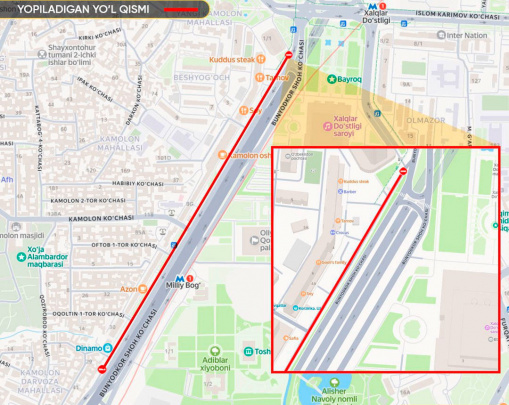 Bunyodkor ko‘chasining ichki dublyori vaqtincha yopiladi