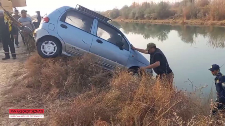 Jizzaxda masofadan o‘t oldirilgan avtomobil kanalga tushib ketdi