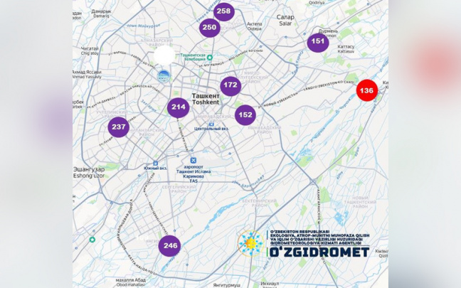 Toshkent havosida PM2,5 me’yordan 3,5 baravar yuqori qayd etildi