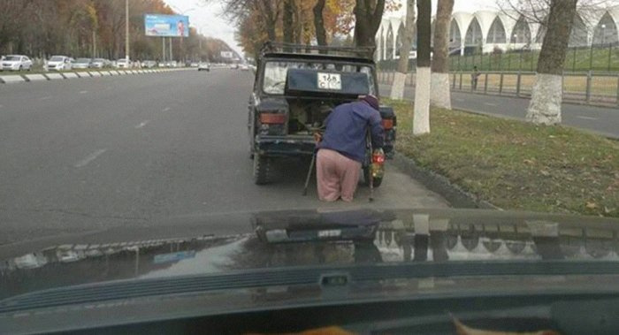 O‘zbekistonlik militsiyachi benzini tugab qolgan nafaqaxo‘rga yordam berdi