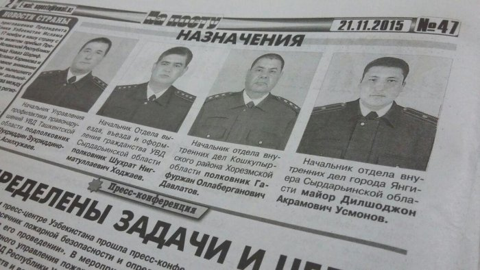 Sirdaryo va Xorazmda bir nechta zobitlar yangi lavozimlarga tayinlandi