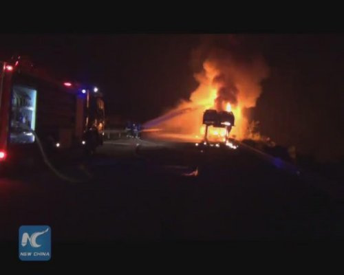 Xitoyda 19ta Audi ortilgan yuk tashuvchi mashina yonib ketdi