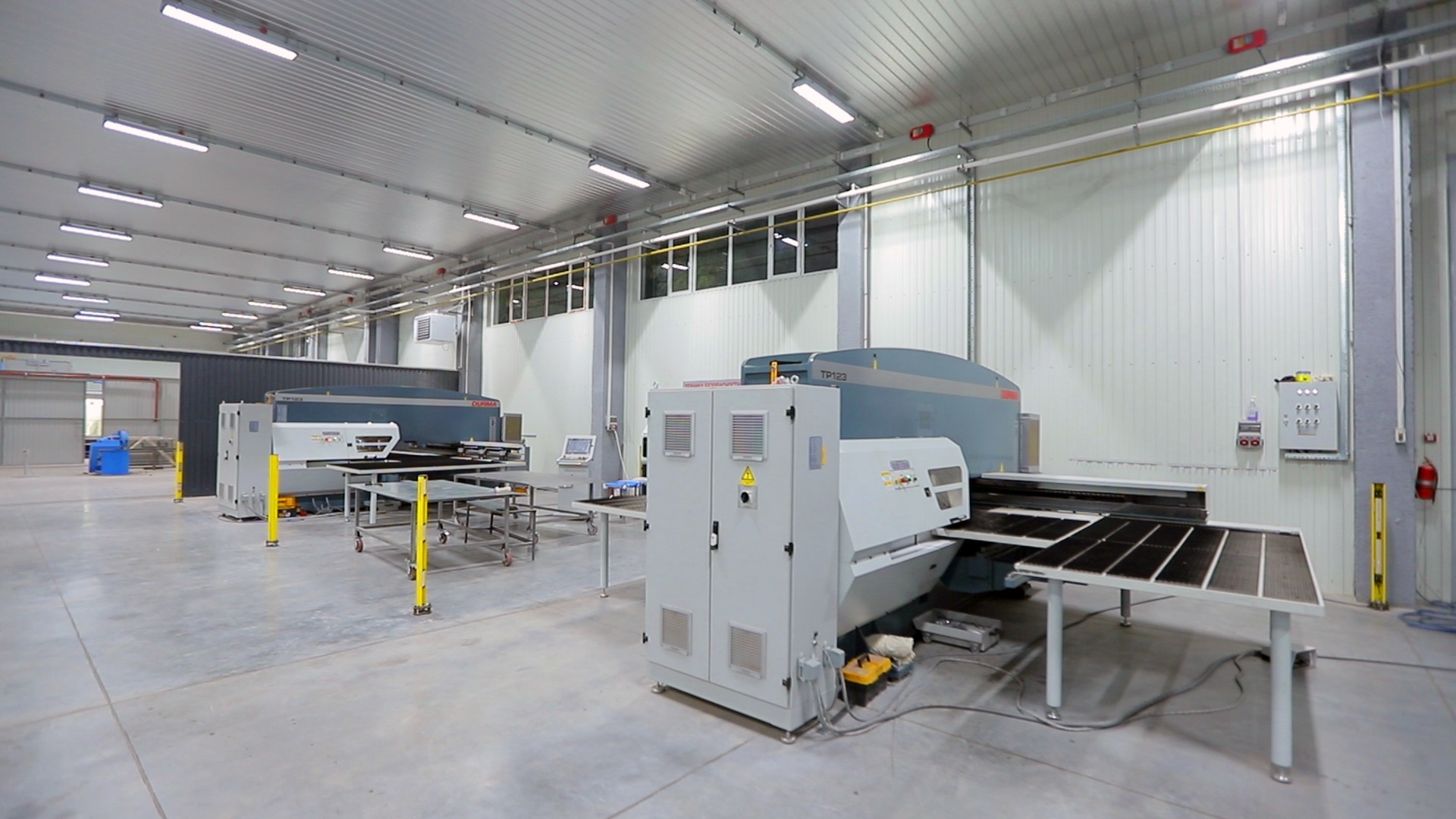 Компания обладает развитой производственной базой с самой современной техникой, станками и новейшими технологическими автоматизированными комплексами для металлообработки и окраски в их числе оборудование с цифровым программным управлением DURMA, линия порошковой окраски ZAFER MAKINA и др. Благодаря первоклассному оснащению продукция производится с максимальной точностью, уменьшаются сроки изготовления без потери высокого качества.