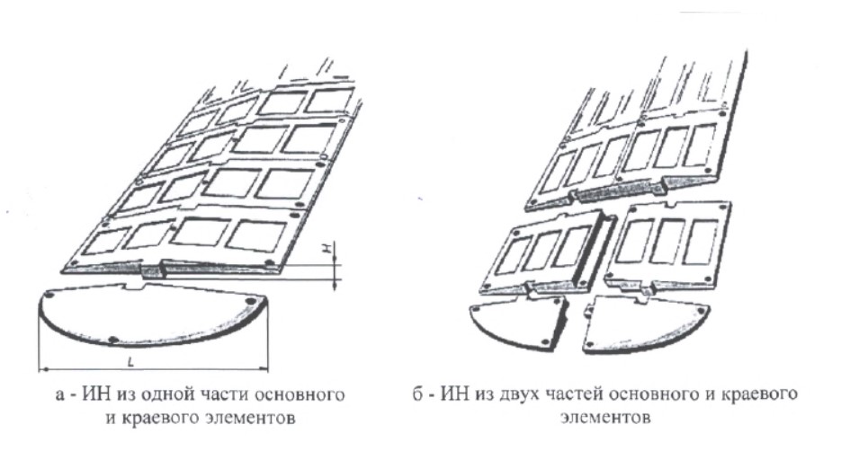 Конструкции ИН в зависимости от технологии изготовления подразделяют на монолитные и сборно-разборные. Длина ИН должна быть не менее ширины проезжей части (допустимое отклонение – не более 0,2 м с каждой стороны дороги).