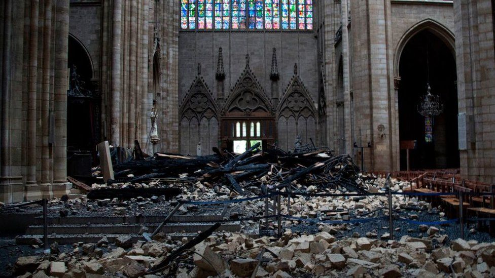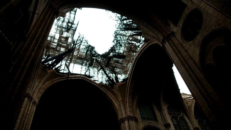 Снимки собора изнутри показывают, насколько сильно Нотр-Дам пострадал от охватившего его пламени.