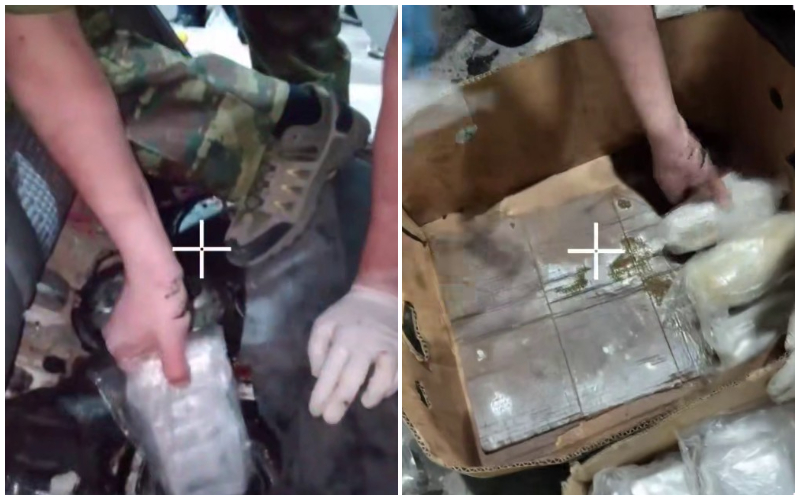 Во время досмотра с применением технических средств контроля таможенники обнаружили подозрительные предметы, скрытые в топливном баке машины. После его вскрытия в присутствии понятых были изъяты 6945 единиц сильнодействующих лекарственных средств Royal, а также наркотики: 10 кг 739 г гашиша, 412 г марихуаны и 35 г опия. Общий вес запрещенных веществ превысил 11 килограммов.