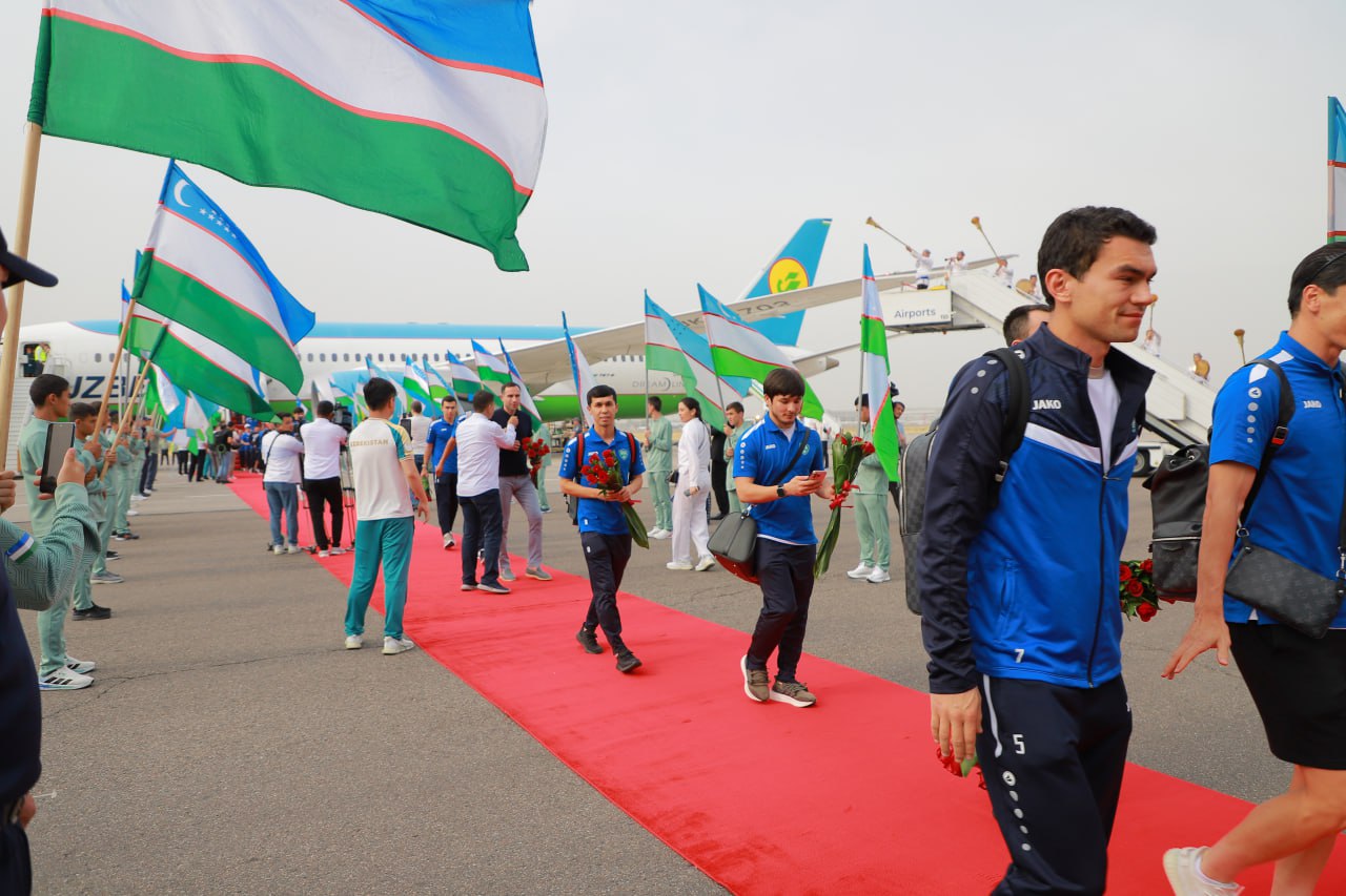 Сборную Узбекистана торжественно встретили в аэропорту Ташкента