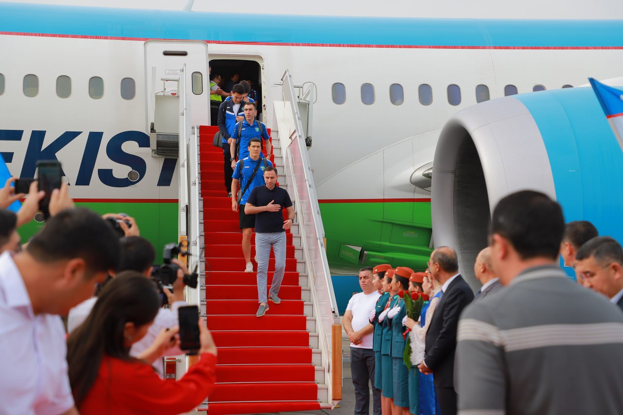 Сегодня, 6 июня, в международном аэропорту Ташкента приземлился самолет авиакомпании Uzbekistan Airways из Абу-Даби. На борту находилась сборная Узбекистана по футболу, накануне сыгравшая вничью с командой ОАЭ и обеспечившая впервые в истории страны выход на чемпионат мира по футболу.
