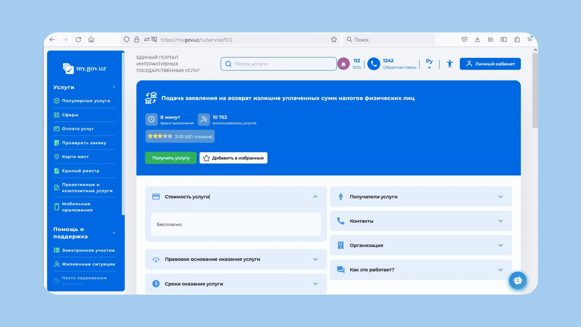 - Просите возврат подоходного налога в my3.Soliq или my.gov