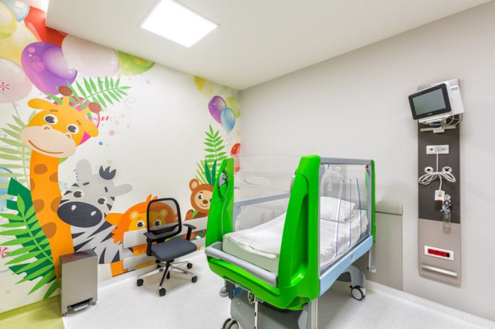 Она рассчитана на 442 койко-места, в том числе имеет 134 одноместных палаты, 18 палат высокой комфортности (suit room) и 4 VIP-палаты (king room), 74 палаты интенсивной терапии, 32 палаты скорой помощи и такое же число многопрофильных послеоперационных палат, 5 родильных комнат, 13 палат для ангиографии, 39 палат химиотерапии, 24 палаты трансплантации костного мозга у детей и взрослых, 6 палат Gamma Knife, 6 палат эндоскопической хирургии, 2 комнаты йодотерапии.