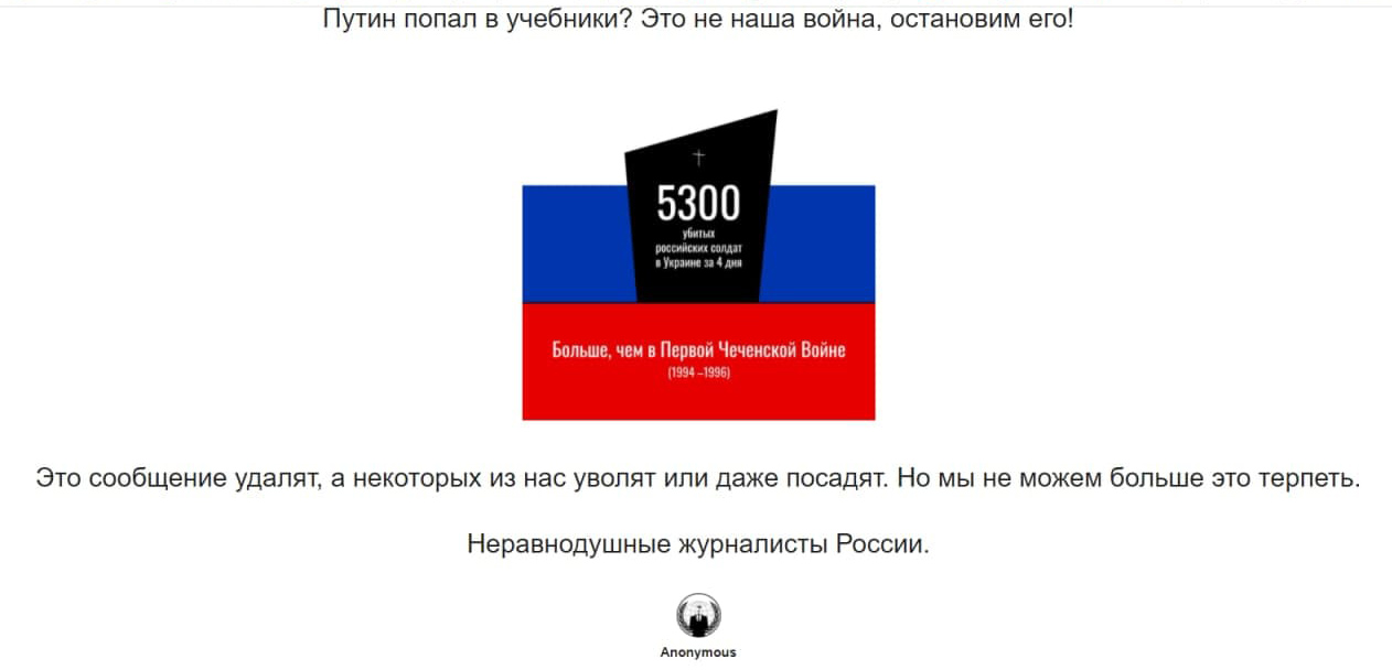 На странице сайтов размещено обращение, подписанное от имени хакерской группы Anonymous,