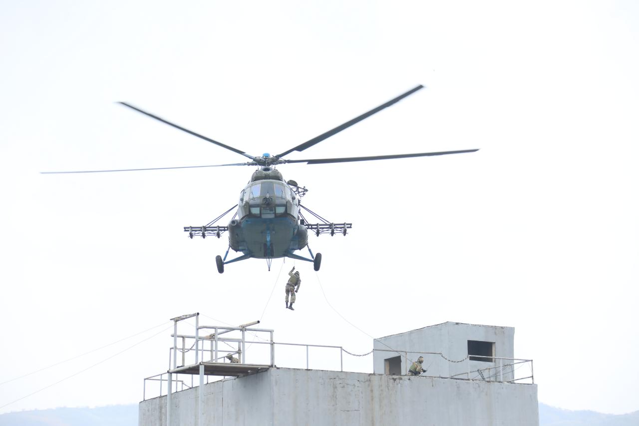 На основе принятого решения тактический воздушный десант в составе группы наших военнослужащих спустившись с вертолета Ми-8 по канату огнем поддержал действия трех штурмовых групп. Штурмовые группы уничтожили террористов, находящихся внутри здания и освободили заложников. На следующем этапе военнослужащие приступили к преследованию отступающих незаконных вооруженных формирований.