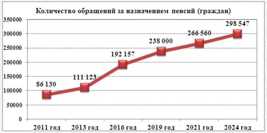 Например, показатель демографического фактора старения населения страны показывает, что имеется тенденция роста лиц пенсионного возраста (с 5,9% в 2010 году к общему количеству населения до 7,4 % в 2018 году). Согласно сведениям органов статистики, начиная с 2019 года, количество лиц пенсионного возраста превысит уровень 9 % и к 2025 году достигнет уровня 11 % (против 6,2 % в 2011 году).