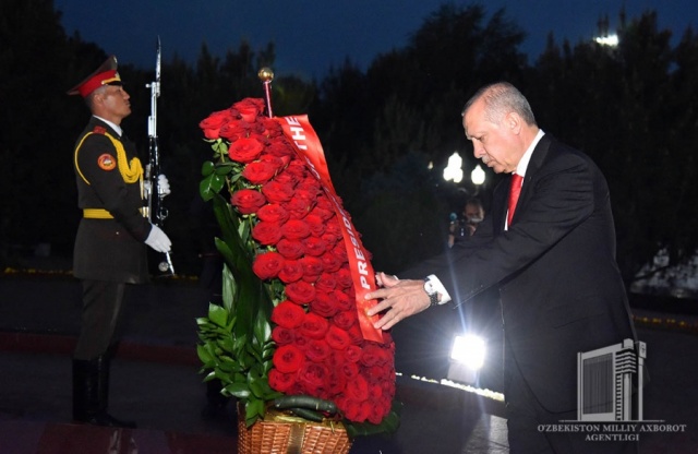 Реджеп Тайип Эрдоган также возложил венок к подножию памятника Первому Президенту Республики Узбекистан Исламу Каримову. Отдал дань уважения светлой памяти великого государственного деятеля, основателя независимого Узбекистана.