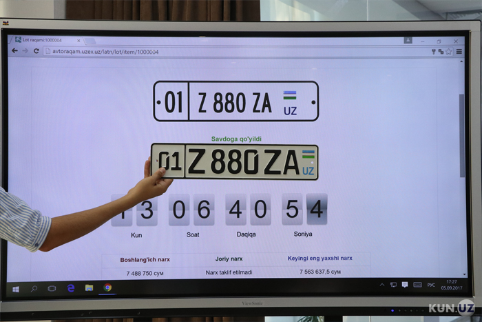 За период с 7 мая по 13 мая текущего года через онлайн аукцион продано 50 автомобильных номерных знаков, из них 41 – для физических лиц и 9 – юридическим лицам. Совокупная сумма реализованных государственных номерных знаков превысила 678 млн сумов, сообщает пресс-служба товарно-сырьевой биржи.