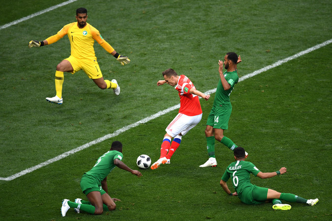 14 июня сборная России обыграла команду Саудовской Аравии в первом матче чемпионата мира. Встреча завершилась со счетом 5:0.
