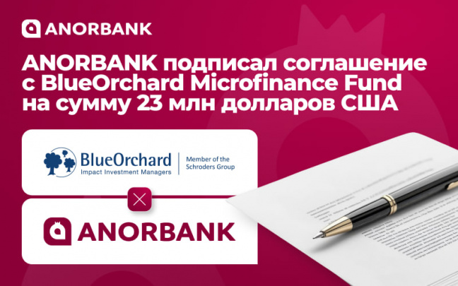 Anorbank и BlueOrchard Microfinance Fund подписали партнёрские соглашения на сумму 23 млн долларов.