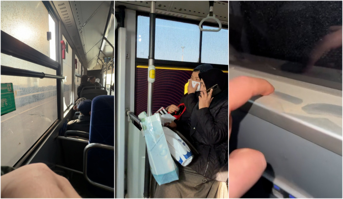 «Очень пыльно, невозможно дышать»: в Ташкенте пассажиров перевозят в грязном автобусе