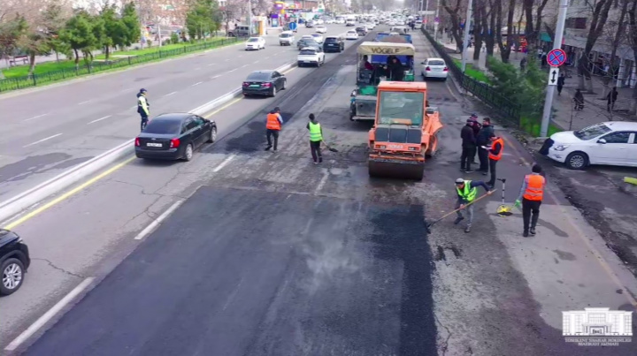 В Ташкенте продолжаются работы по ремонту дорог и установке «умных» светофоров