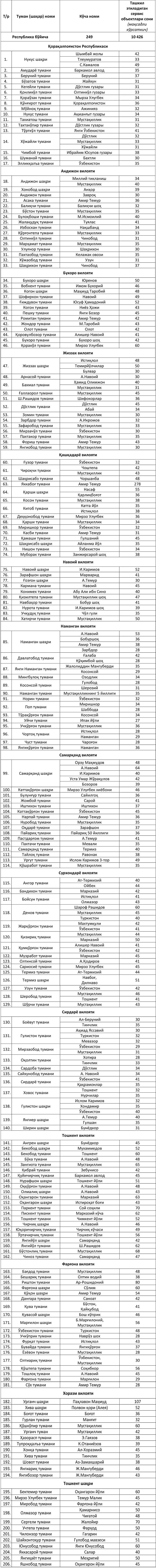Согласно приложению, в республике преобразуют 206 улиц. В Ташкенте в 12 районах будет преобразовано 12 улиц.
