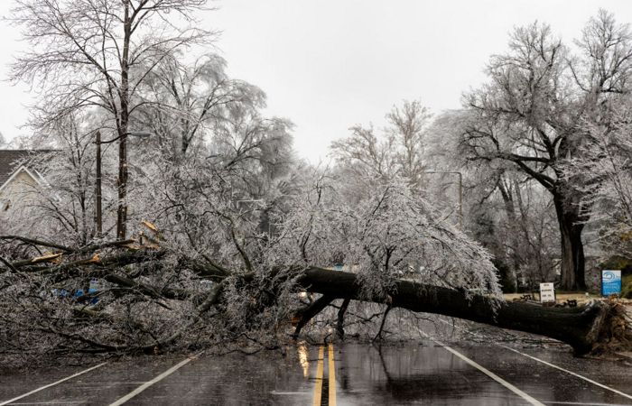 По данным Axios, зимний шторм принес в эти регионы сильный снегопад и ледяной дождь. Обледенение деревьев и линий электропередач привело к массовым отключениям электроэнергии.