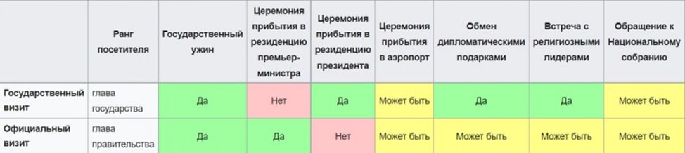 По его данным, есть несколько градаций визита главы государства в другую страну. Это могут быть государственный визит, официальный визит, рабочий (деловой) визит, встреча «без галстуков», неофициальный визит или визит проездом. При этом в каждом случае протокол приема главы государства отличается.