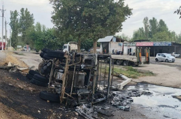 В Ташкентской области после столкновения с легковым автомобилем сгорел грузовик