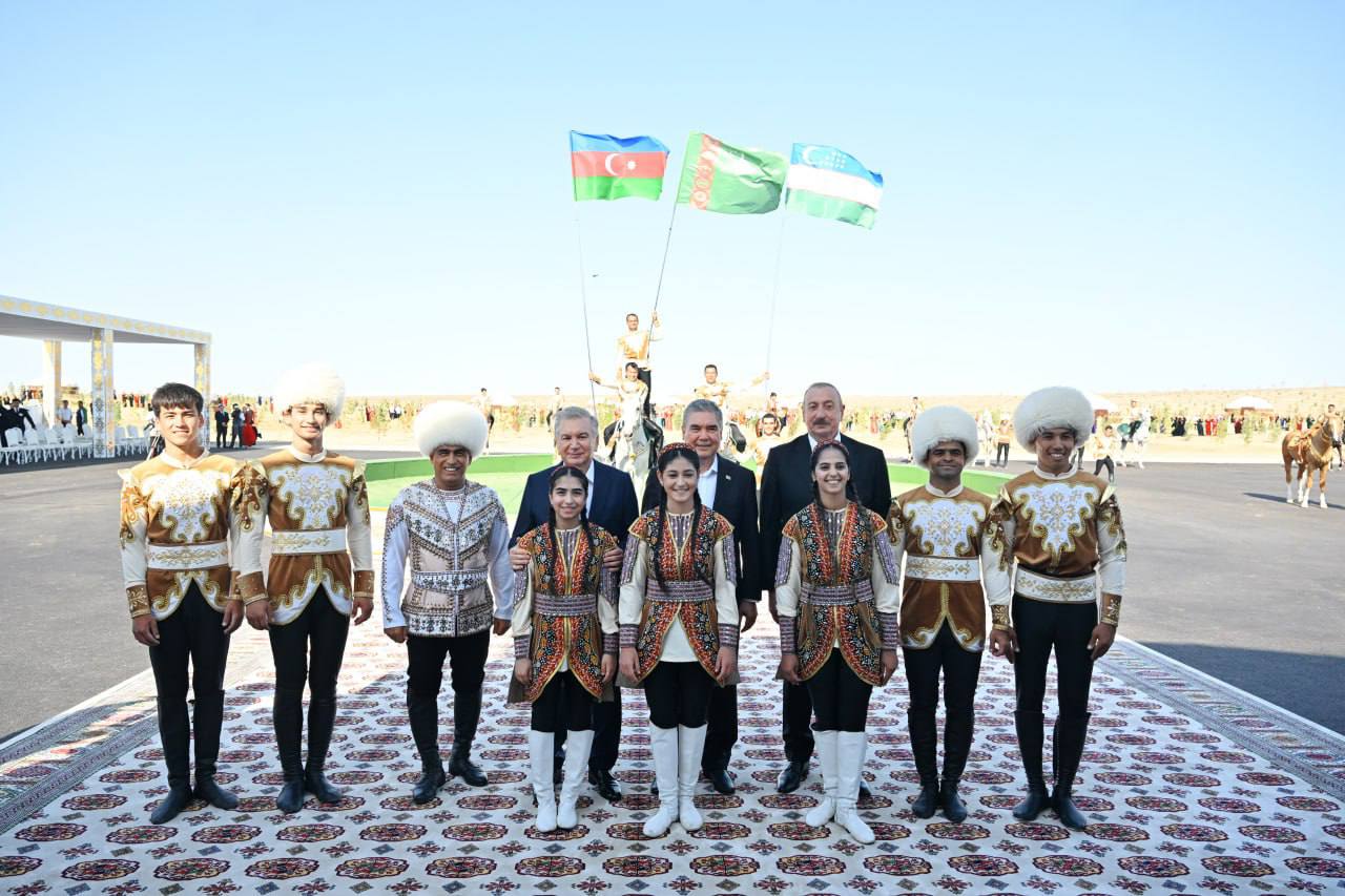 В рамках культурной программы рабочего визита президент Узбекистана Шавкат Мирзиёев, национальный лидер туркменского народа Гурбангулы Бердымухамедов и президент Азербайджанской Республики Ильхам Алиев совместно посетили специальную площадку рядом с Конгресс-центром «Аваза».