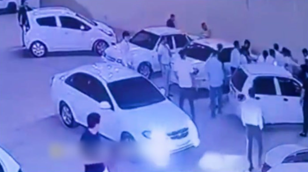 В городе Янгиюле Ташкентской области в одном из ресторанов произошёл инцидент. Как видно на поступившем в Kun.uz видео, на парковке перед банкетным залом двое молодых людей устроили драку.
