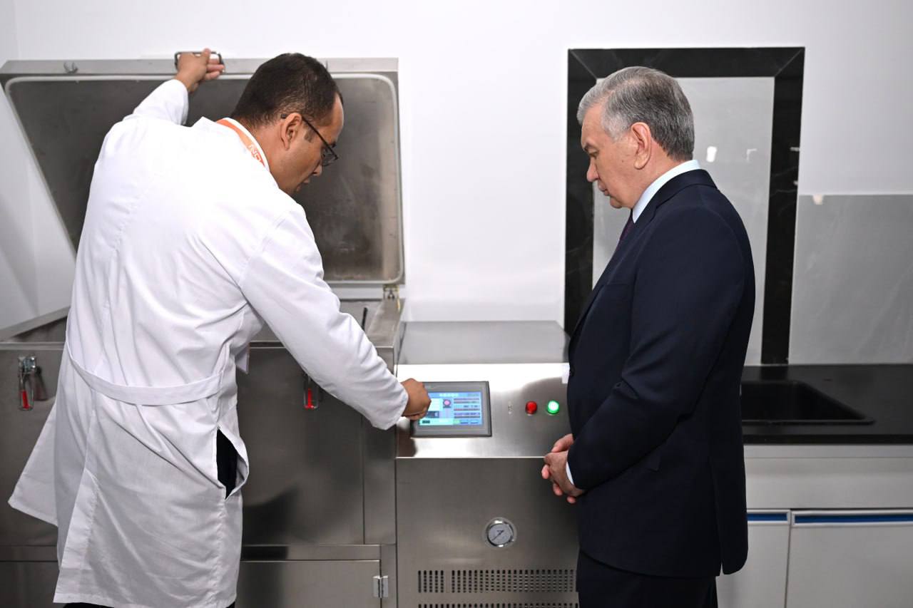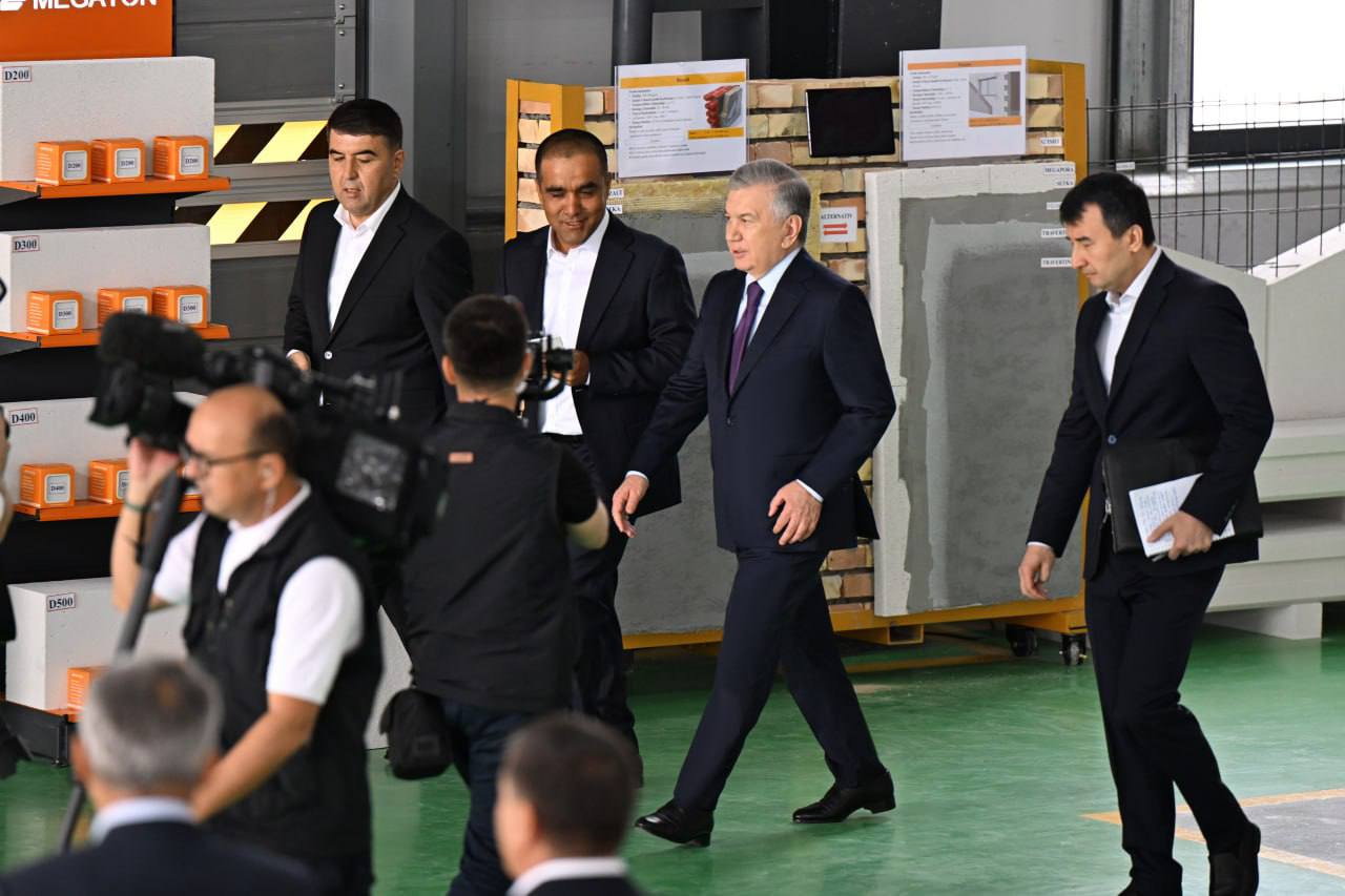 Президент Шавкат Мирзиёев ознакомился с деятельностью завода по выпуску газобетонных блоков предприятия «Мегатон» в Чустском районе.