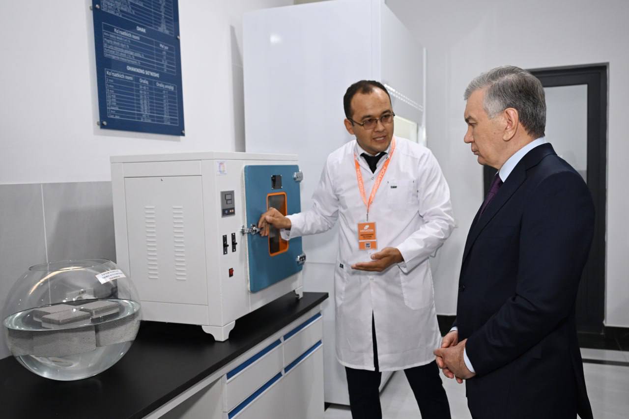 Мирзиёев посетил предприятие по производству газобетонных блоков в Чусте
