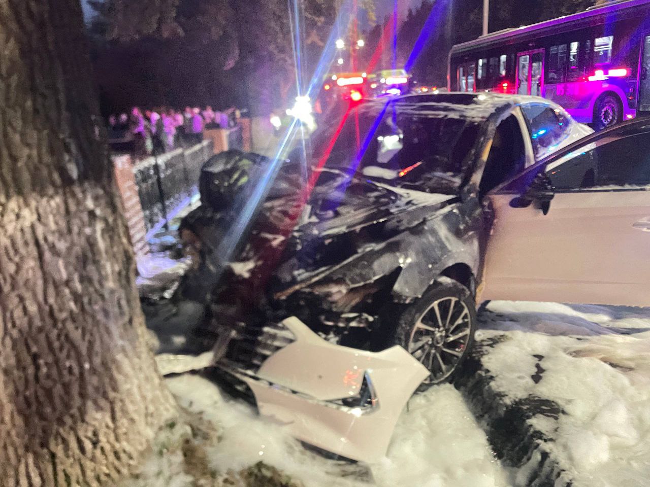 На проспекте Амира Темура после ДТП загорелся автомобиль
