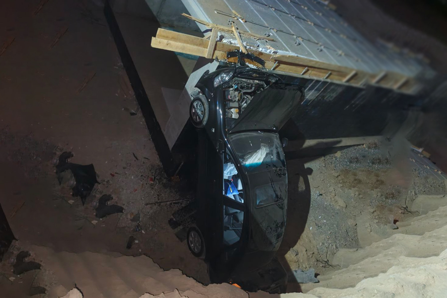 В Ташобласти Lacetti упал в котлован строящегося подземного перехода