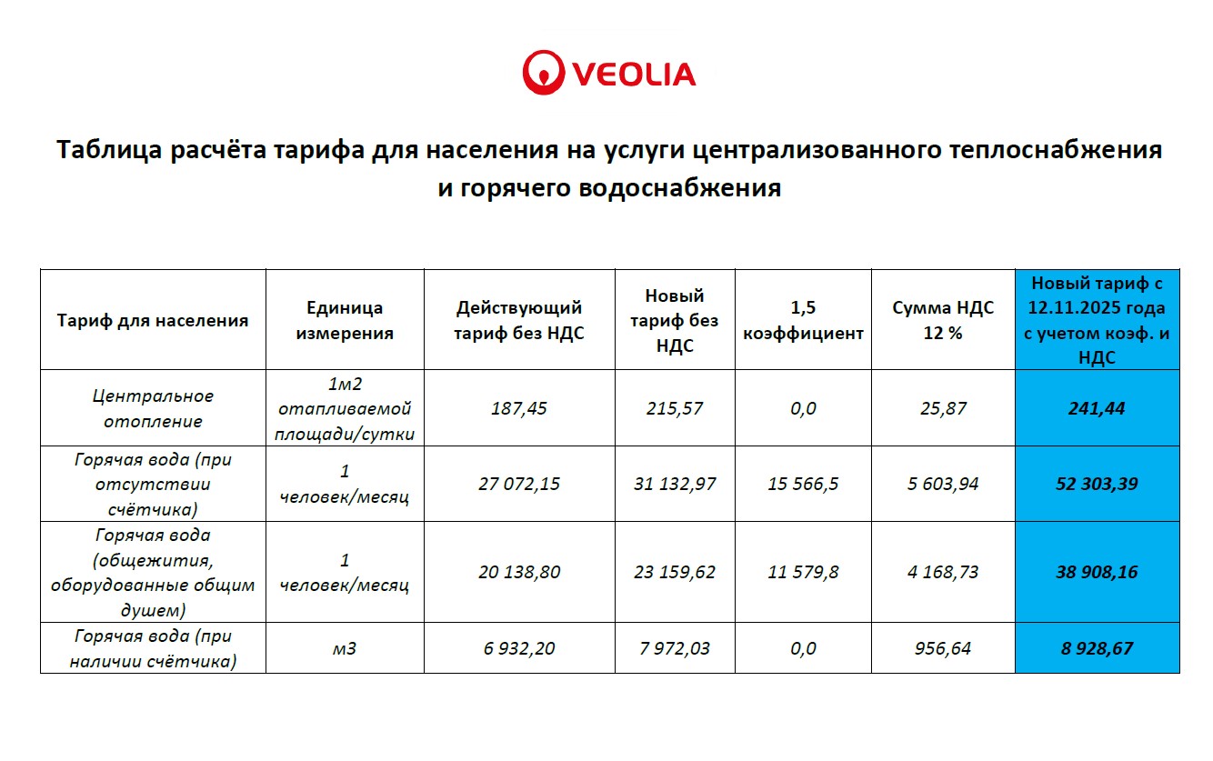 С 12 ноября вступают в силу новые тарифы на услуги отопления и горячей воды, предоставляемые компанией Veolia Energy Tashkent.
