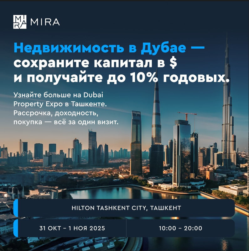 2025 год стал рекордным для рынка Дубая: в третьем квартале объем сделок вырос почти на 20%, а всего за девять месяцев продажи достигли 498,8 млрд дирхамов. Но парадокс в том, что на рекордном рынке сотни инвесторов оказались в минусе. Причина – слепая вера в мифы: «любая новостройка вырастет», «флиппинг выгоднее аренды». В 2026-м цена таких ошибок станет ещё выше. Разобрать, какие стратегии работают на самом деле, можно будет 30 октября и 1 ноября в Ташкенте – на закрытой выставке недвижимости Dubai Property Expo от Mira Estate. В рамках мероприятия эксперты рынка ОАЭ покажут реальные кейсы и модели под новый цикл, который позволят нарастить капитал, сохранить доход в валюте и защитить инвестиции от инфляции.