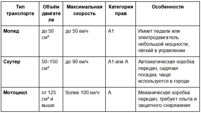- Подкатегория «A1» охватывает мопеды, электроскутеры и легкие бензиновые скутеры, которые не развивают высокую скорость.