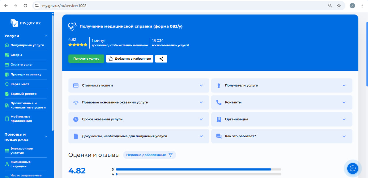 Важно: на портале my.gov.uz нельзя пройти медосмотр дистанционно, сервис позволяет только получить электронную версию справки, если вы уже прошли обследование у всех необходимых специалистов.