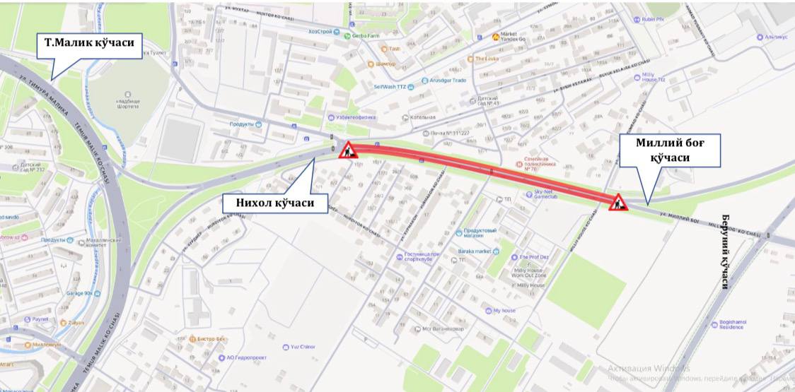 В Ташкенте, в Мирзо-Улугбекском районе, на улице Нихол проводятся ремонтные работы. В связи с этим участок дороги от улицы Миллий бог до кольцевого перекрёстка закрыт для движения с 23:00 5 ноября до 23:00 6 ноября.