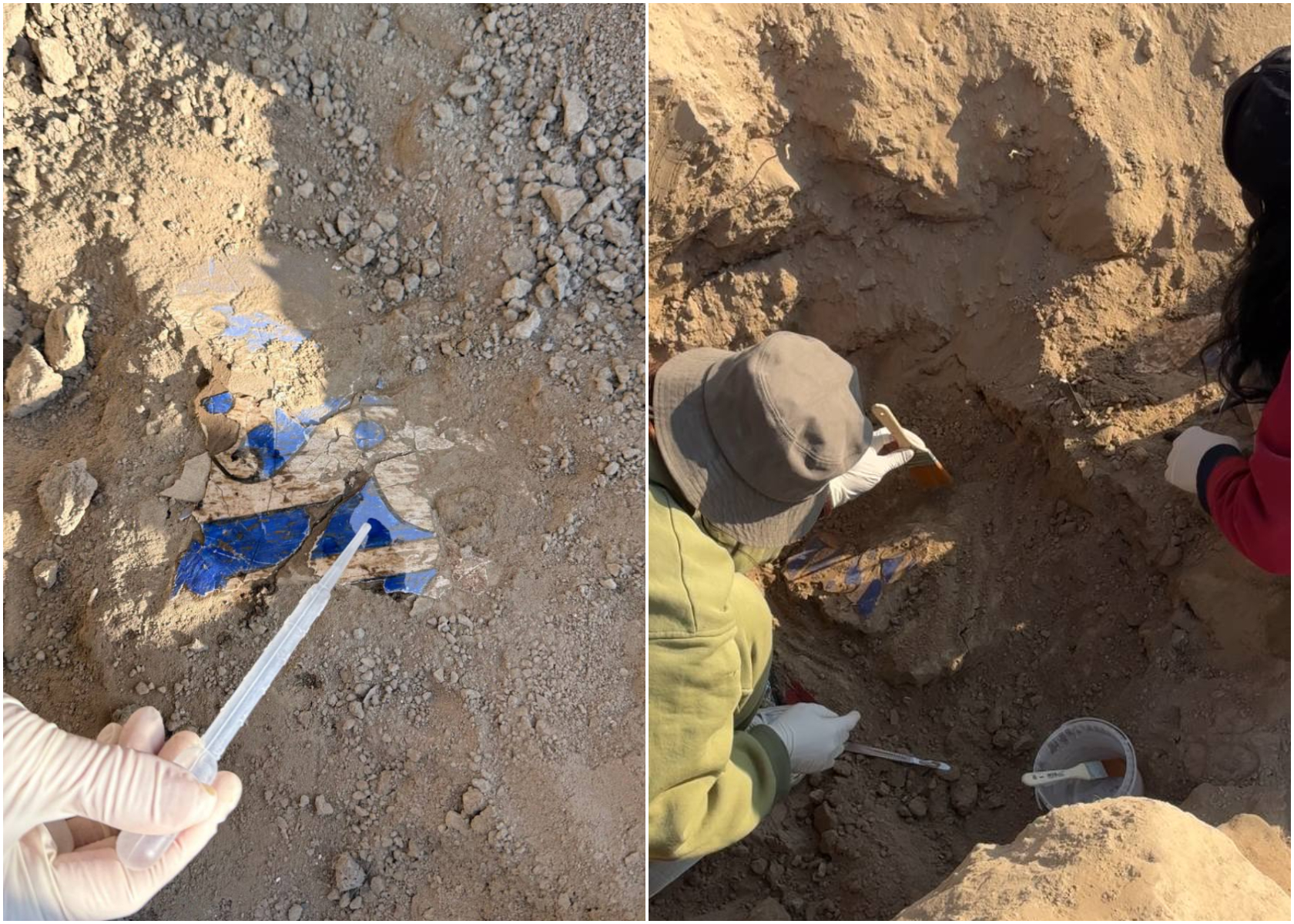 В одной из комнат караван-сарая археологи нашли фрагменты настенной росписи. Размеры обнаруженных кусков — 25×30, 15×20 и 30×35 сантиметров. Это подтверждает, что помещения караван-сарая были украшены настенной живописью.