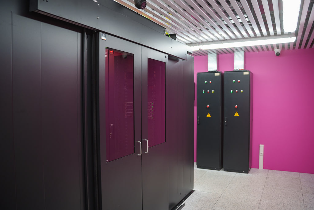Отказоустойчивость. Все узлы продублированы: если один выходит из строя, система автоматически перераспределяет нагрузку на другие. Питание и охлаждение построены с резервированием — есть запасные контуры на случай сбоя. Мониторинг непрерывно измеряет температуру, влажность и энергопотребление.