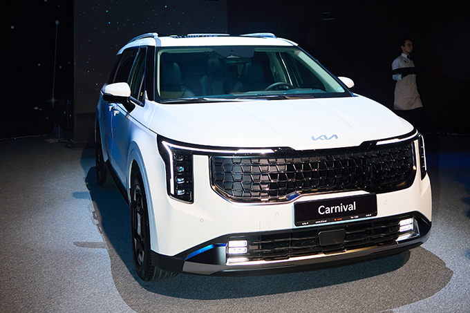 Обновлённый Carnival также получил серьёзные изменения в дизайне и оснащении. Передняя часть выполнена в новом фирменном стиле Kia: вертикальные LED-фары сочетаются с современной решёткой радиатора и монолитным передним бампером, который выглядит мощнее и солиднее.
