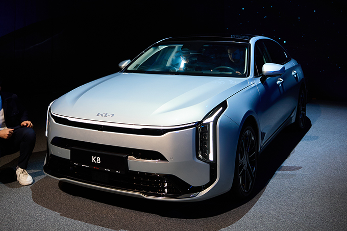 При первом взгляде на K8 бросаются изменения в экстерьере. Передняя часть получила новый бампер, который простирается вдоль обновлённой решётки радиатора и визуально переходит в капот, формируя более монолитный и спортивный облик. Улучшенная аэродинамика помогает уменьшить сопротивление воздуха и, соответственно, расход топлива.
