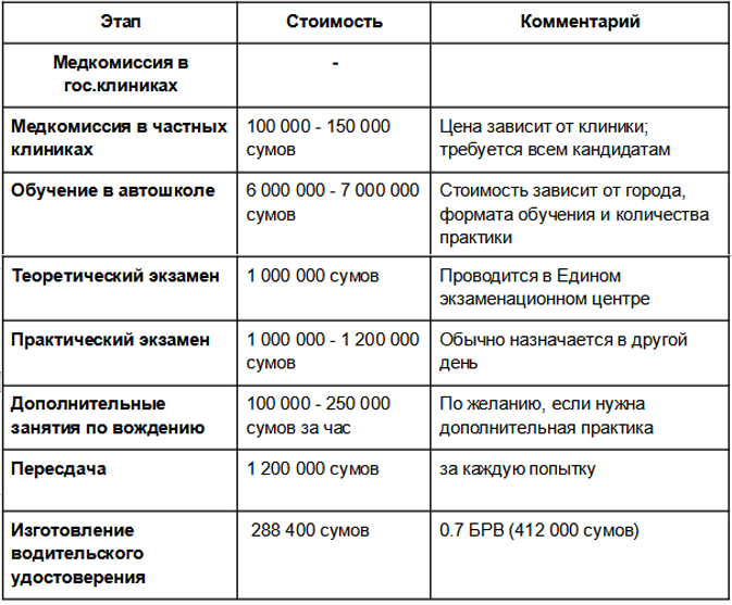 - 1 млн сумов - если сдавать практику в тот же день, что и теорию;